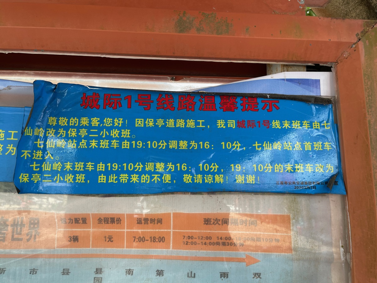 三亜から七仙嶺行きのバスがあり、そのバスに途中上車。自分以外の客はいない。