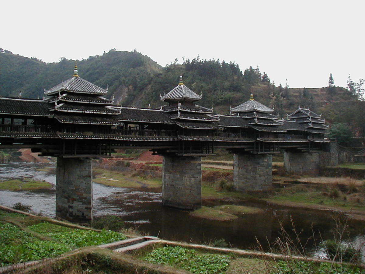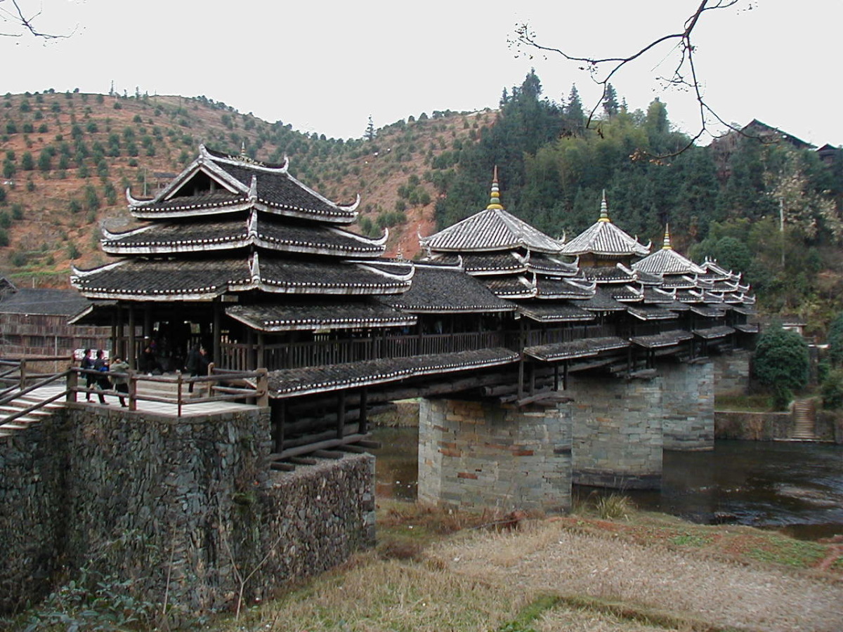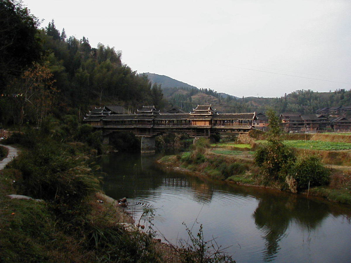 程陽風雨橋が有名。 8つのトン族村があり、大小いくつかの風雨橋やトン族鼓楼がある。