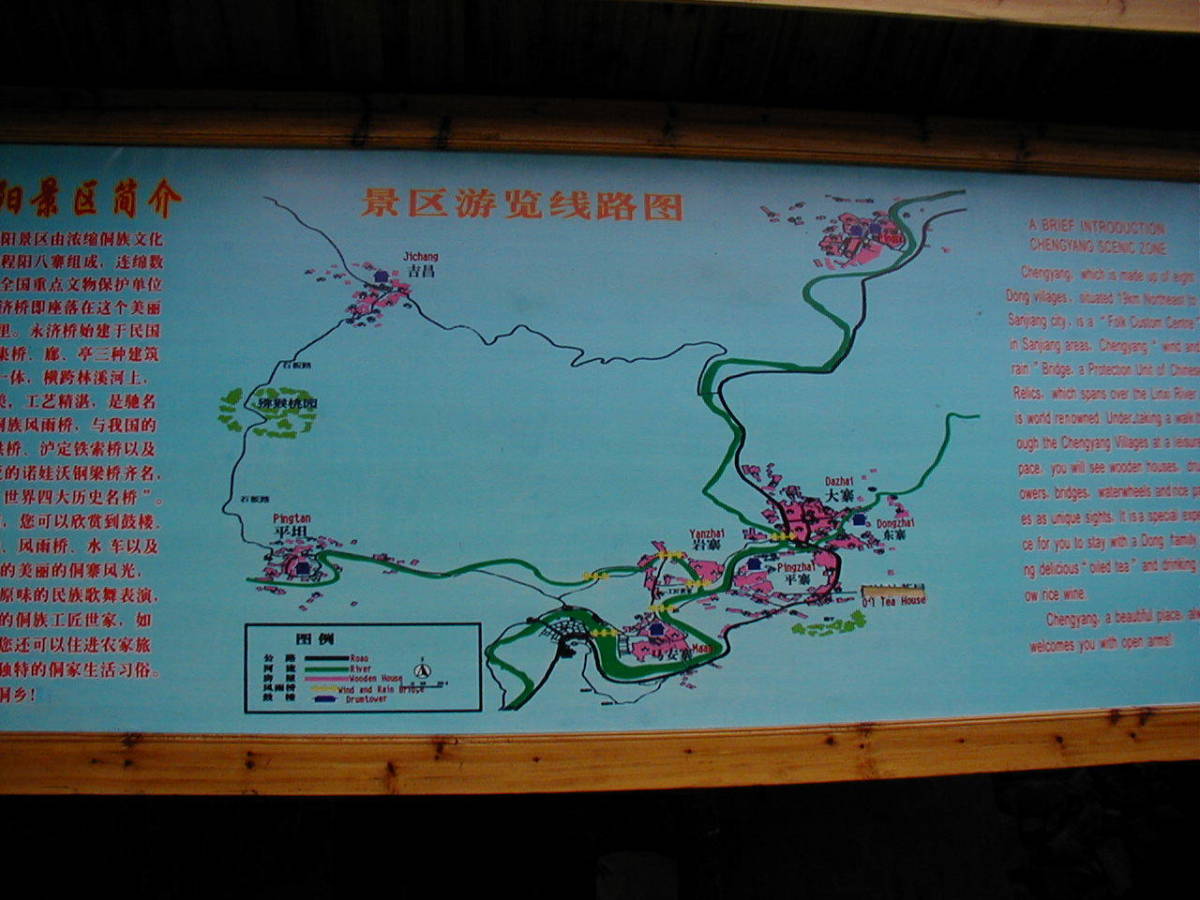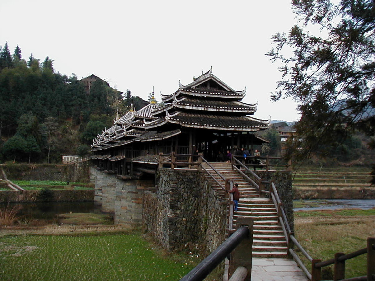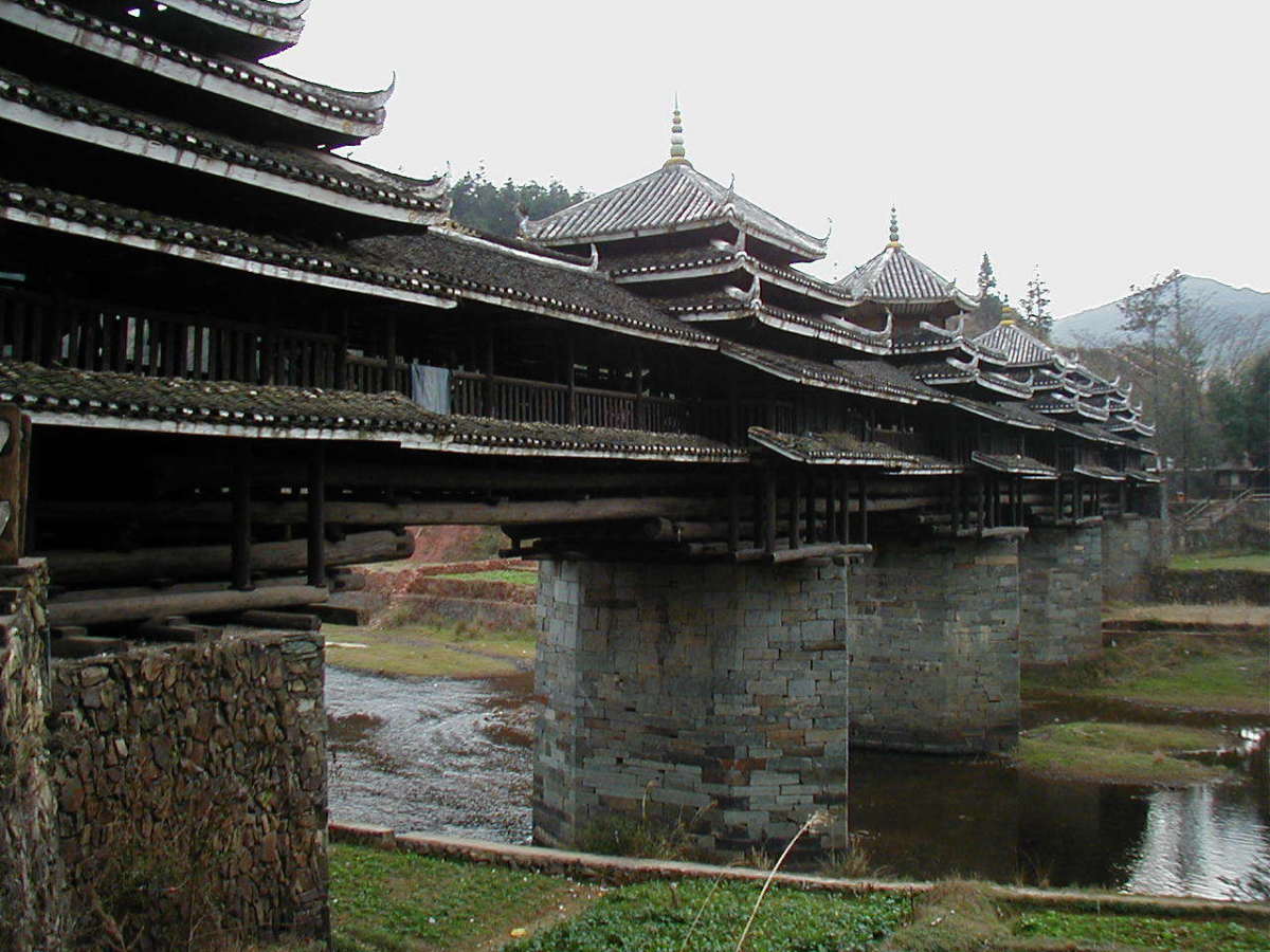 程陽風雨橋が有名。 8つのトン族村があり、大小いくつかの風雨橋やトン族鼓楼がある。