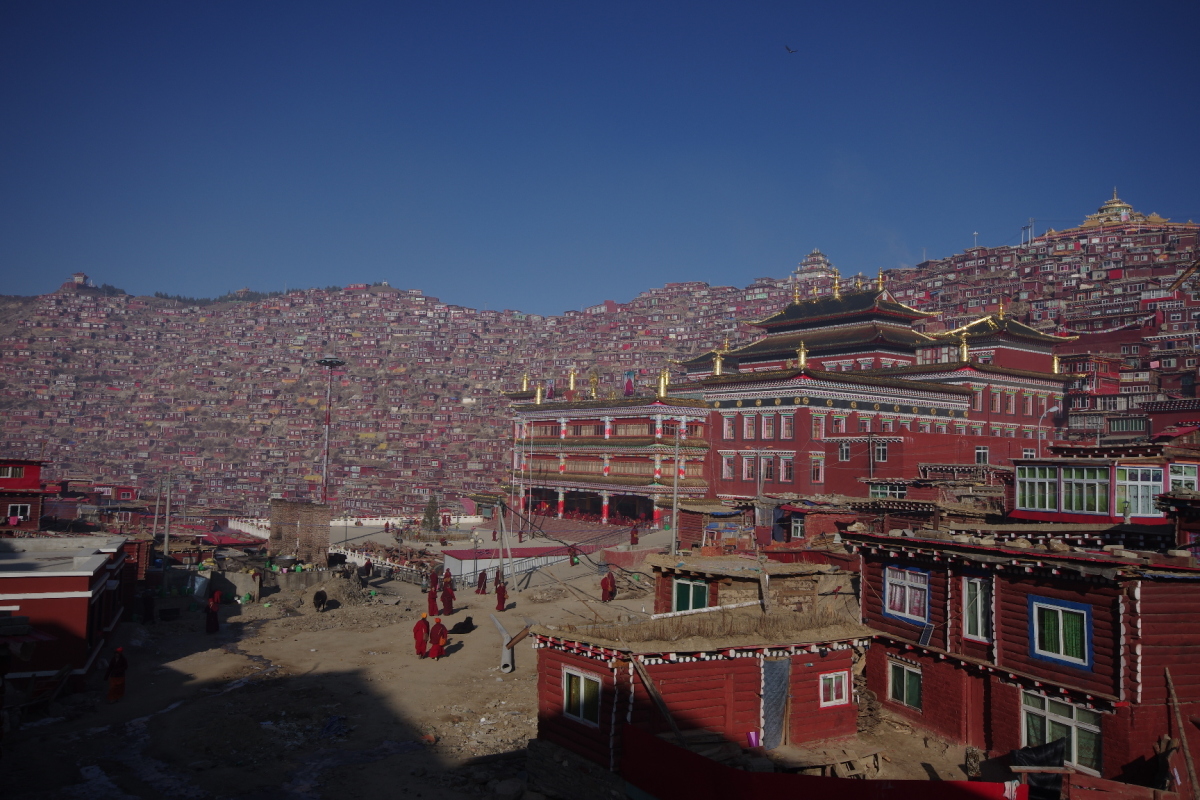 中国語名は「喇榮五明佛学院」。 ゴンバ内の招待所に宿泊し、次の朝から観光。