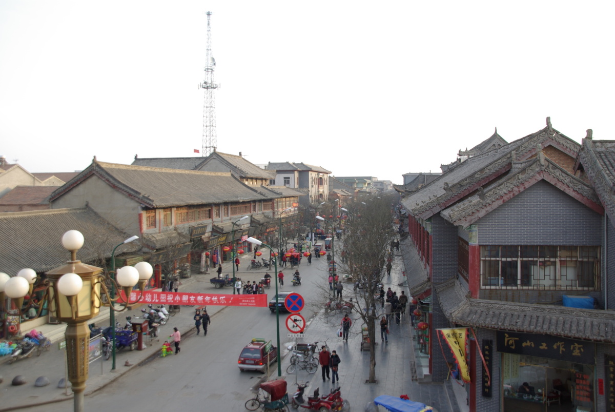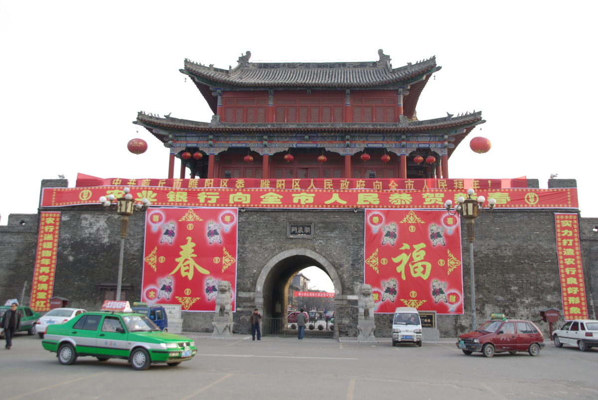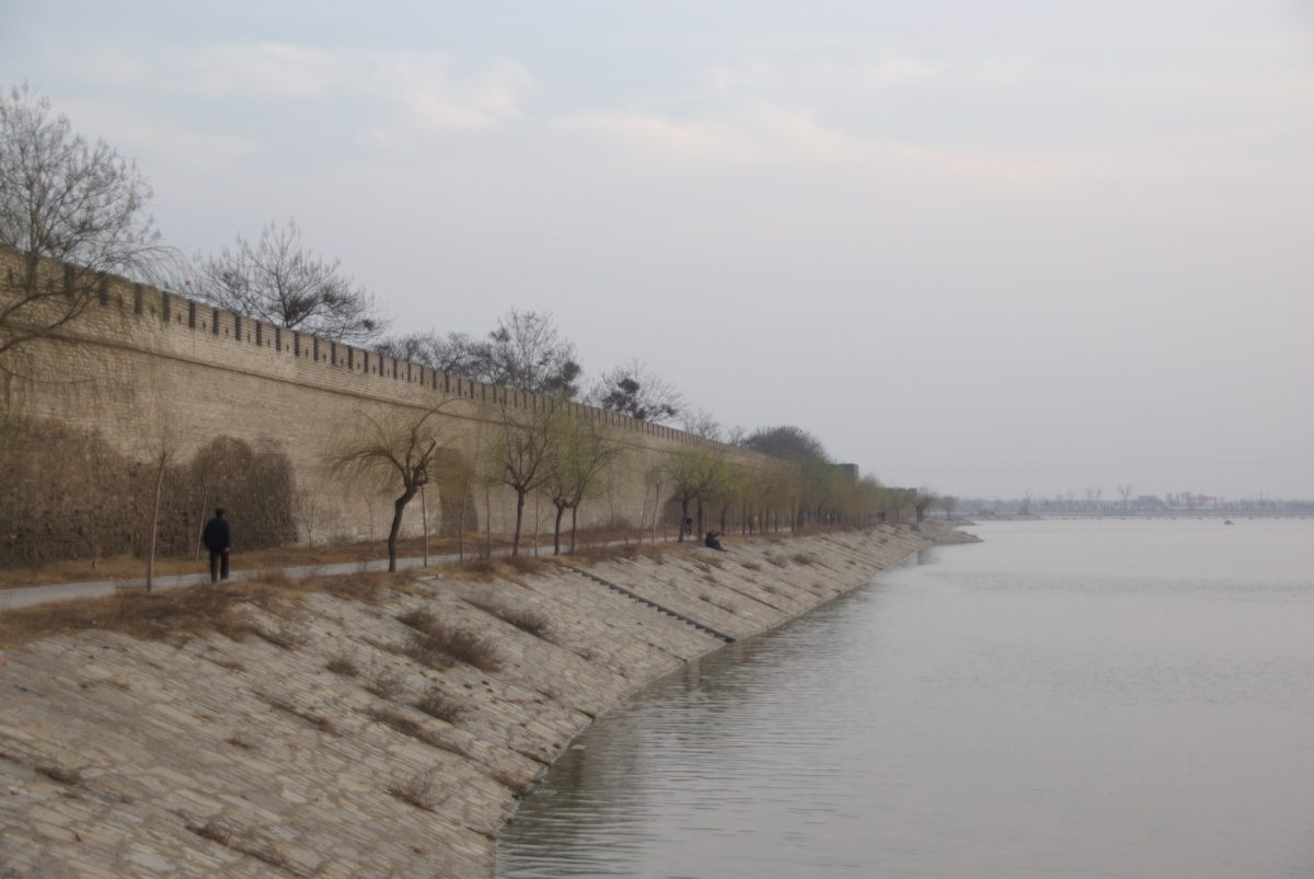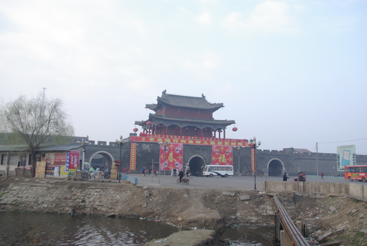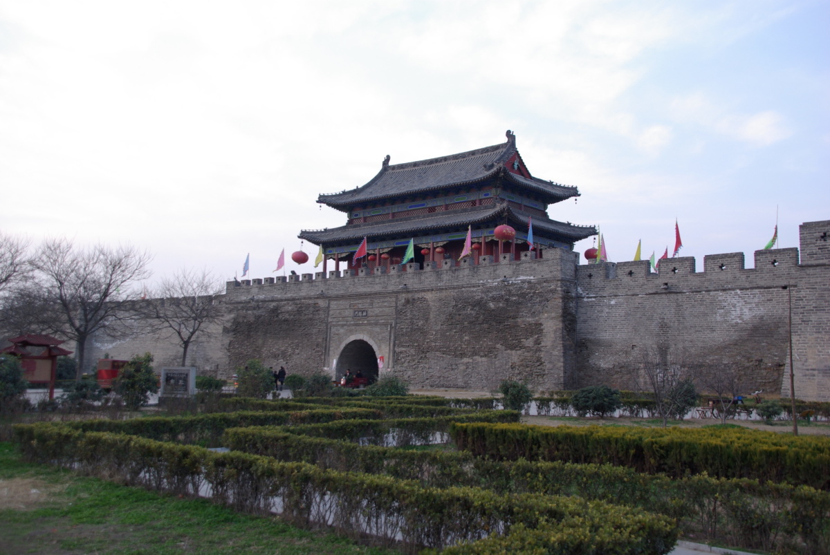帰徳府城。 商丘市街地の南のほうにある。古城周りの堀が大変広いため、地図を見ると古城がどこにあるかすぐに分かる。 城壁はきれいな四角形。東西南北にそれぞれ城門がある。