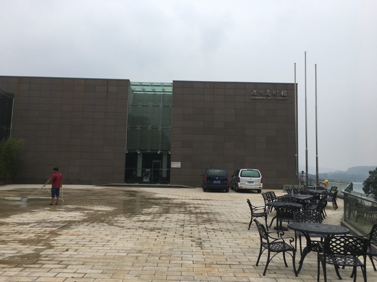 ダム湖のほとりに建つ深圳美術館