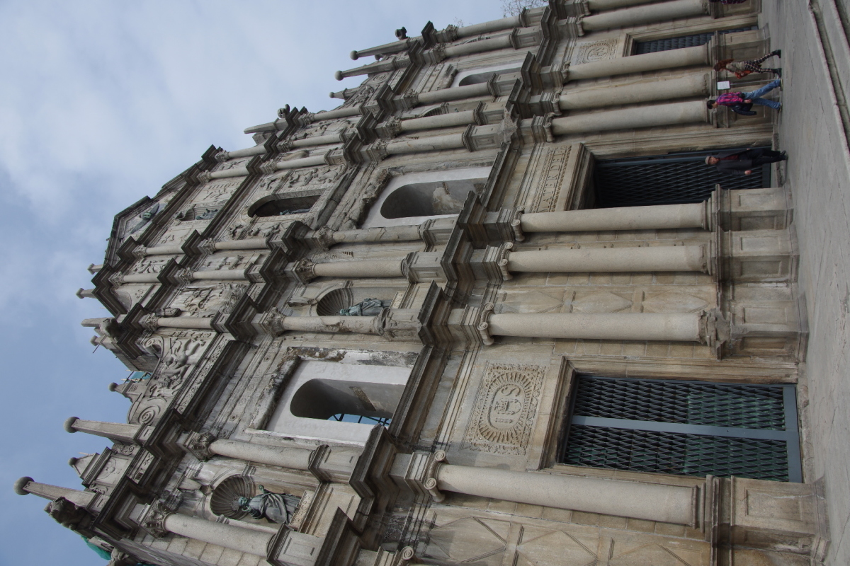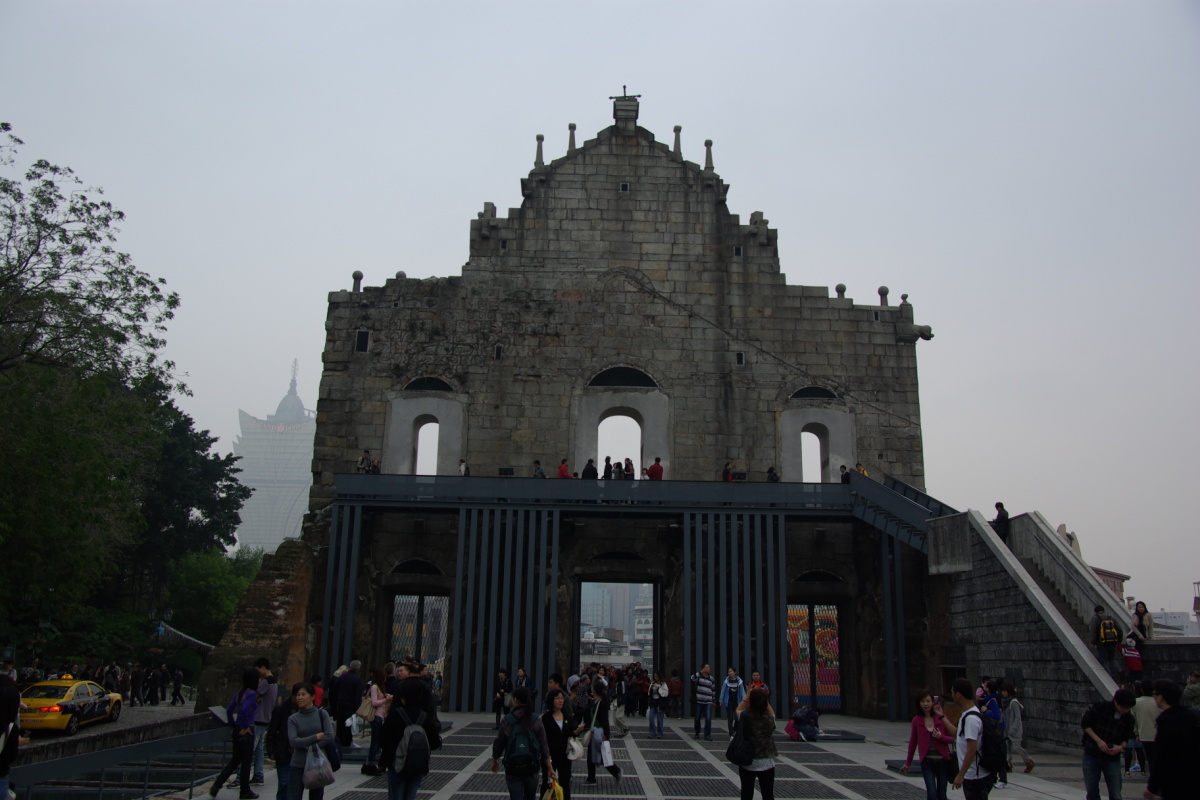 火事により建物前面の石造りの壁だけが残された。 中国語名は大三巴碑坊という。