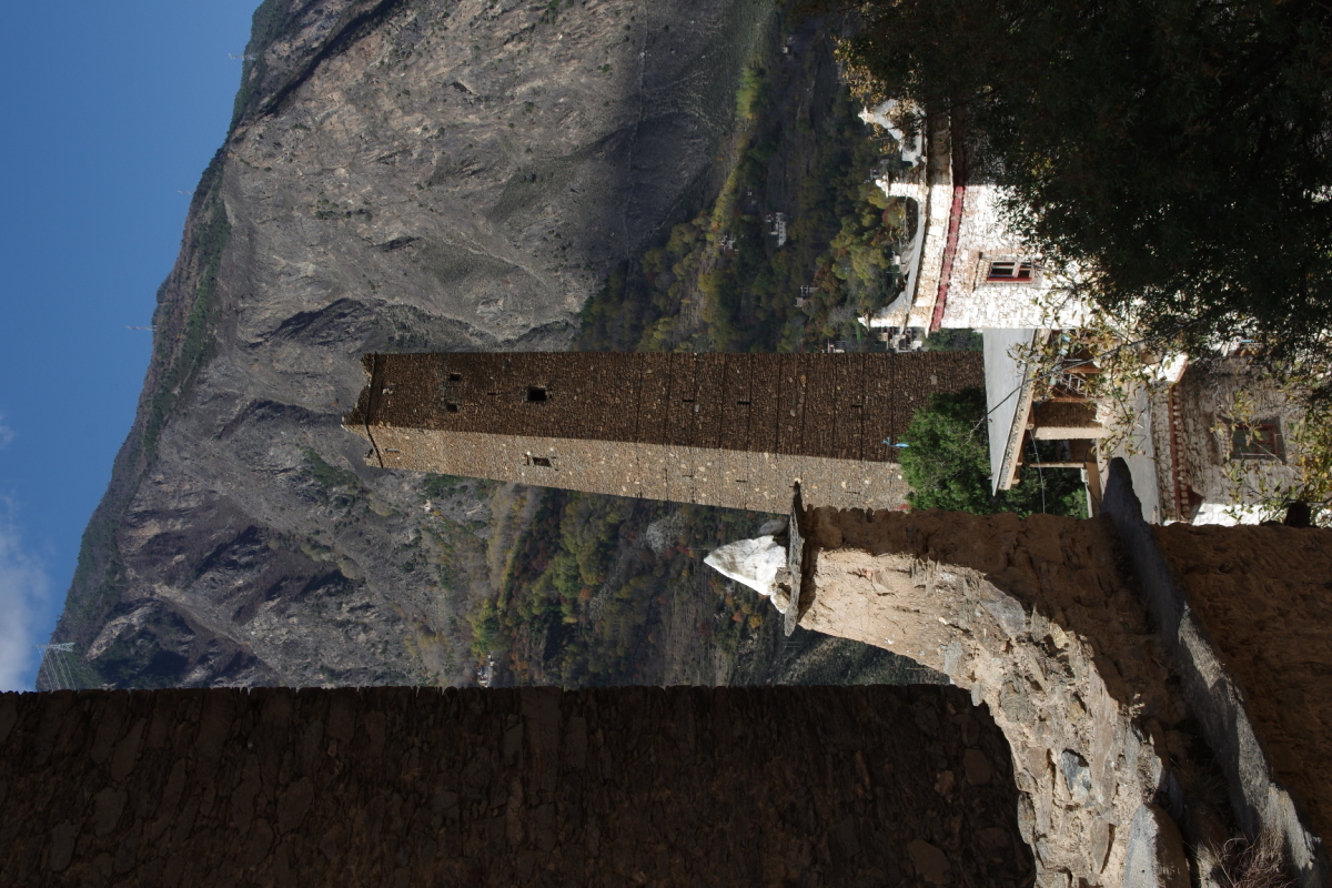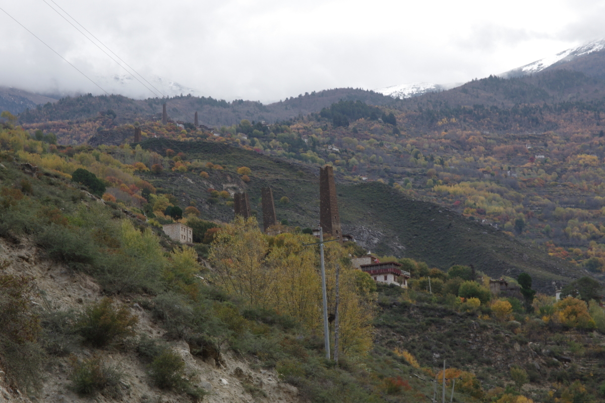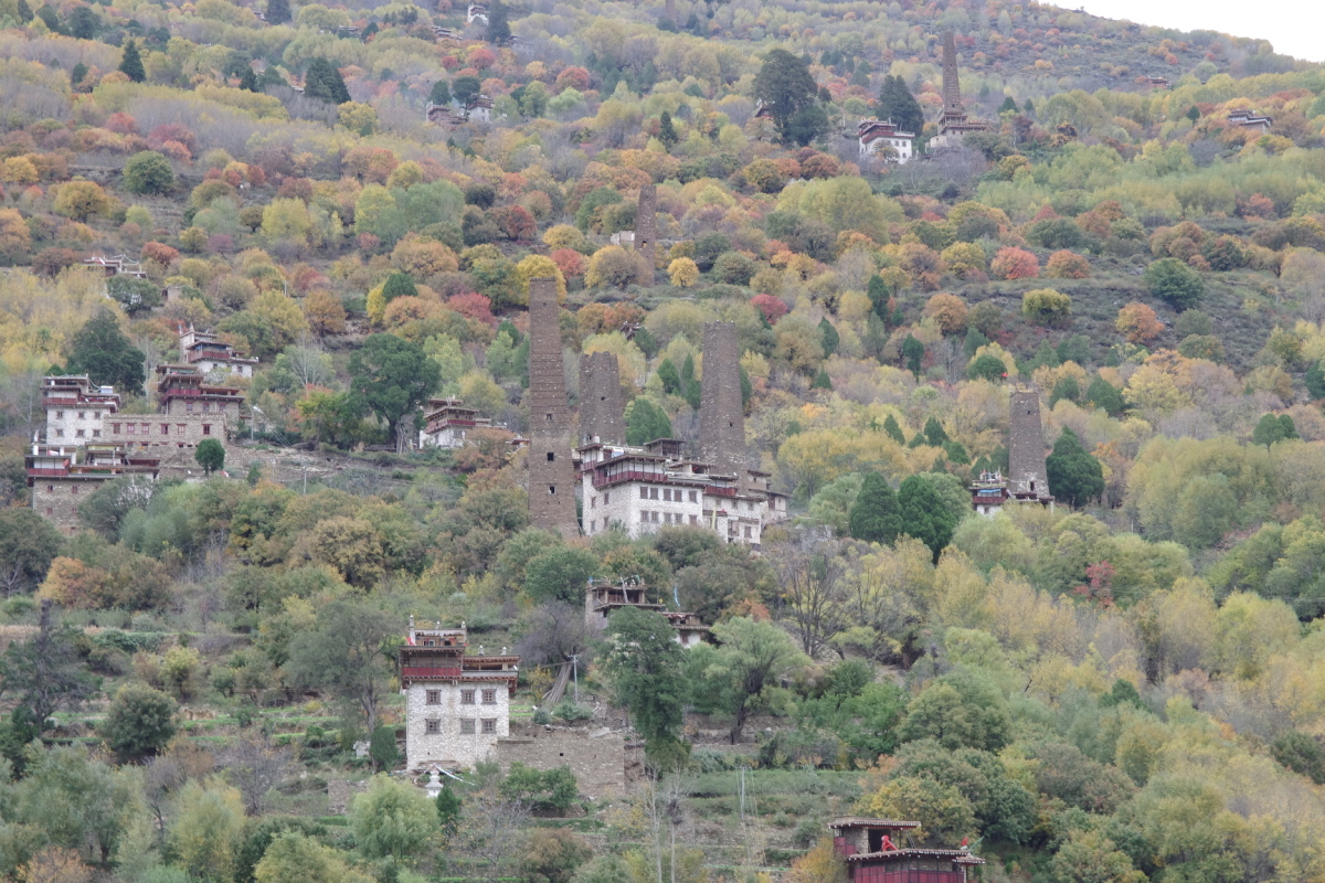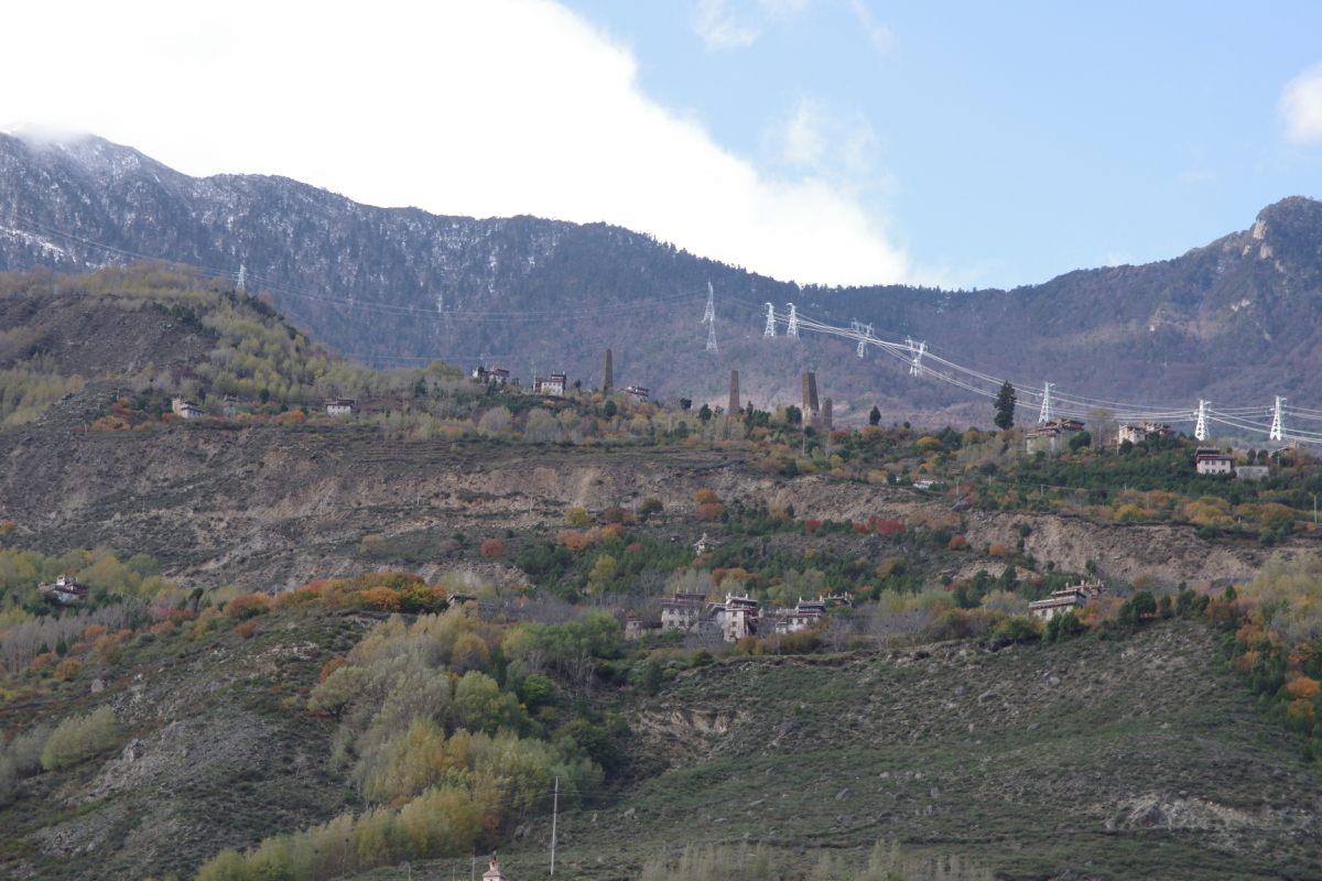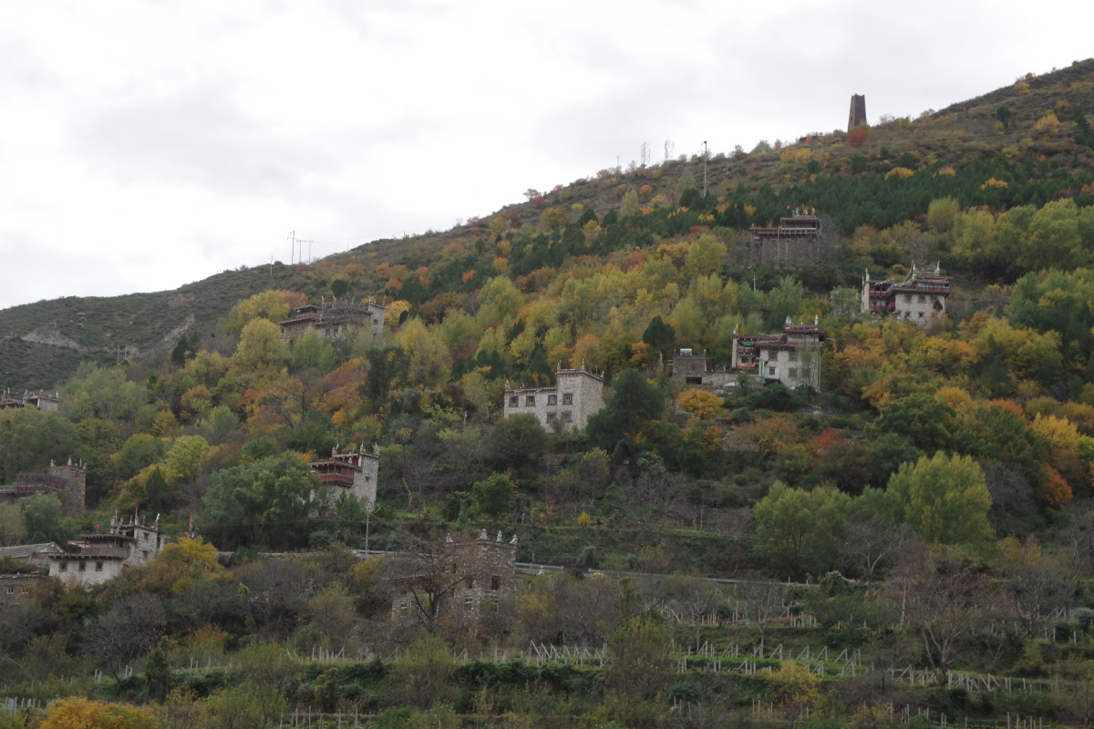 県城から4Kmほどのところにある梭坡郷。 碉楼と呼ばれる高い塔がたくさんある。