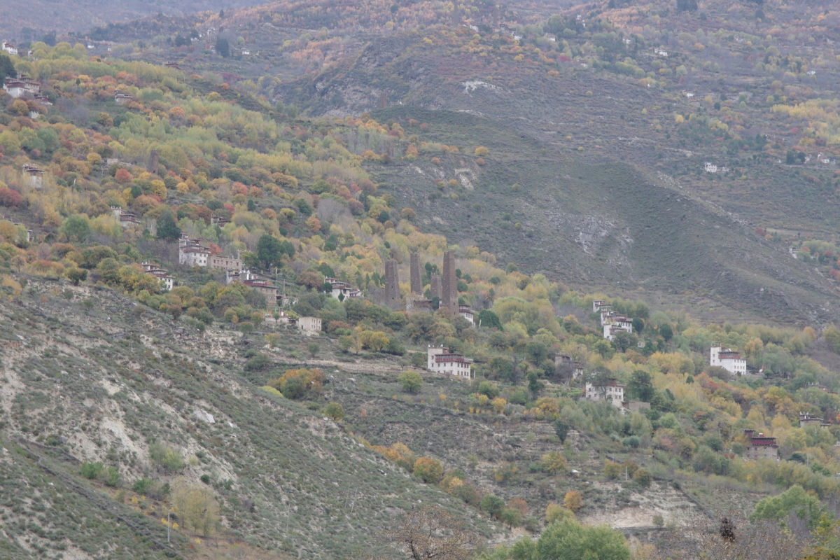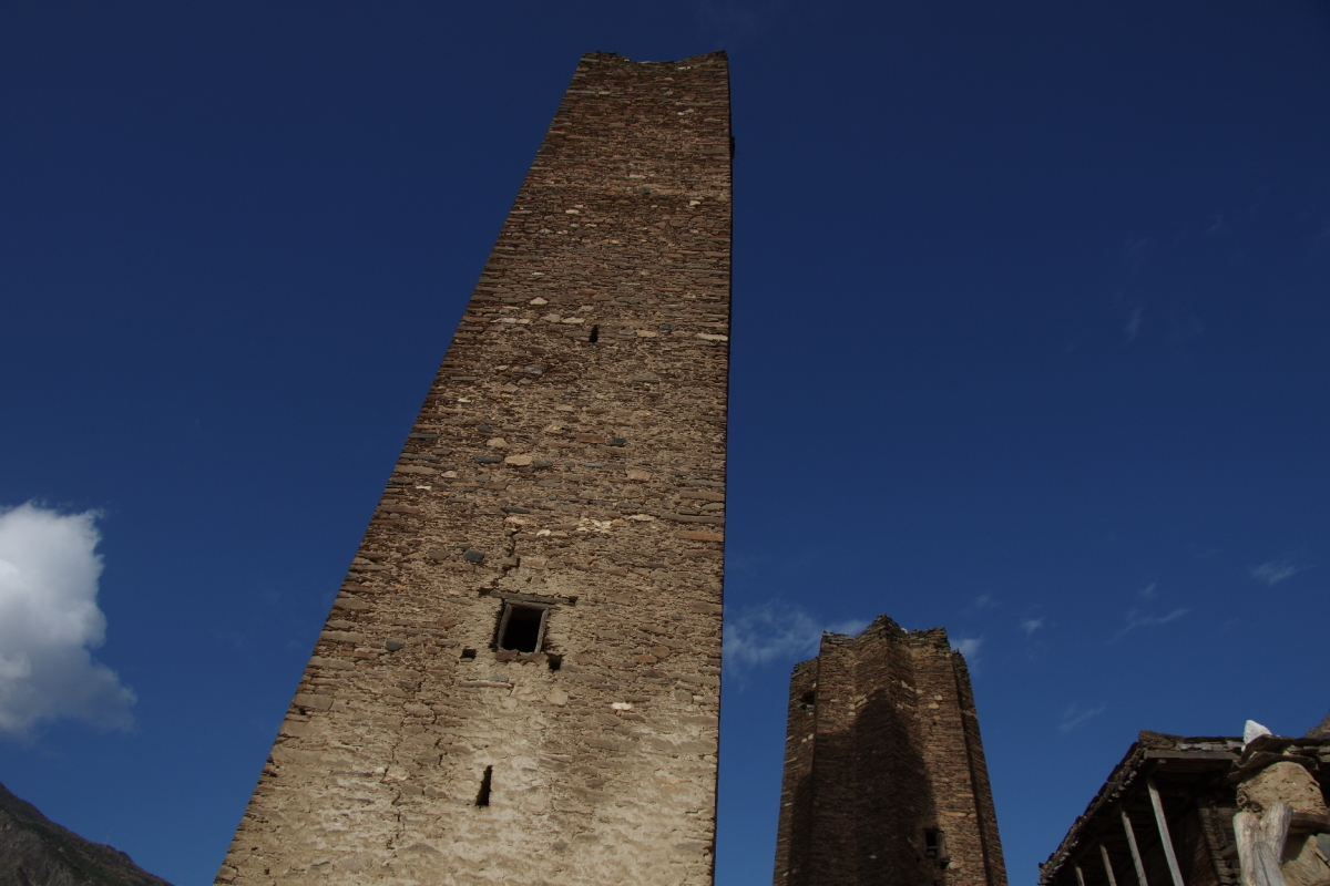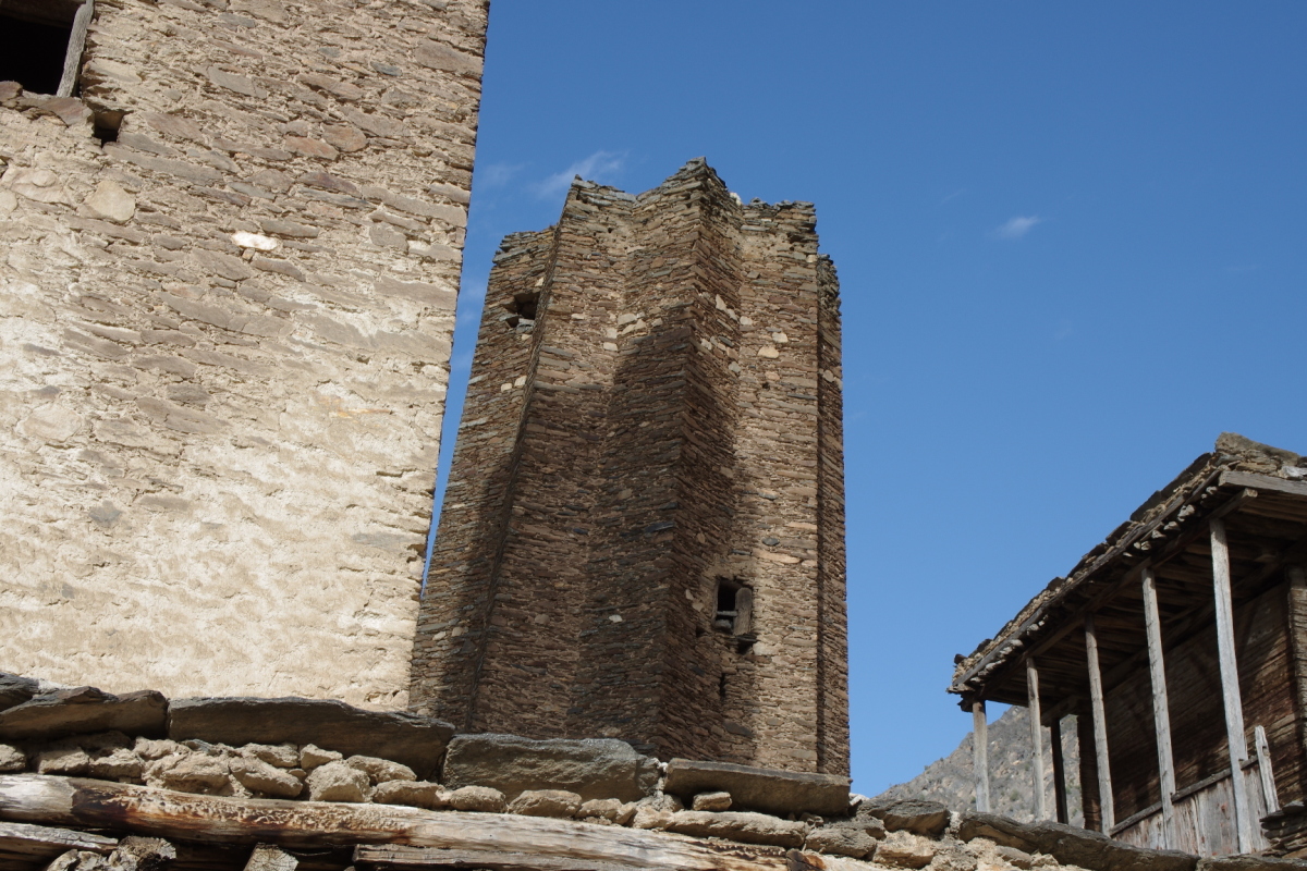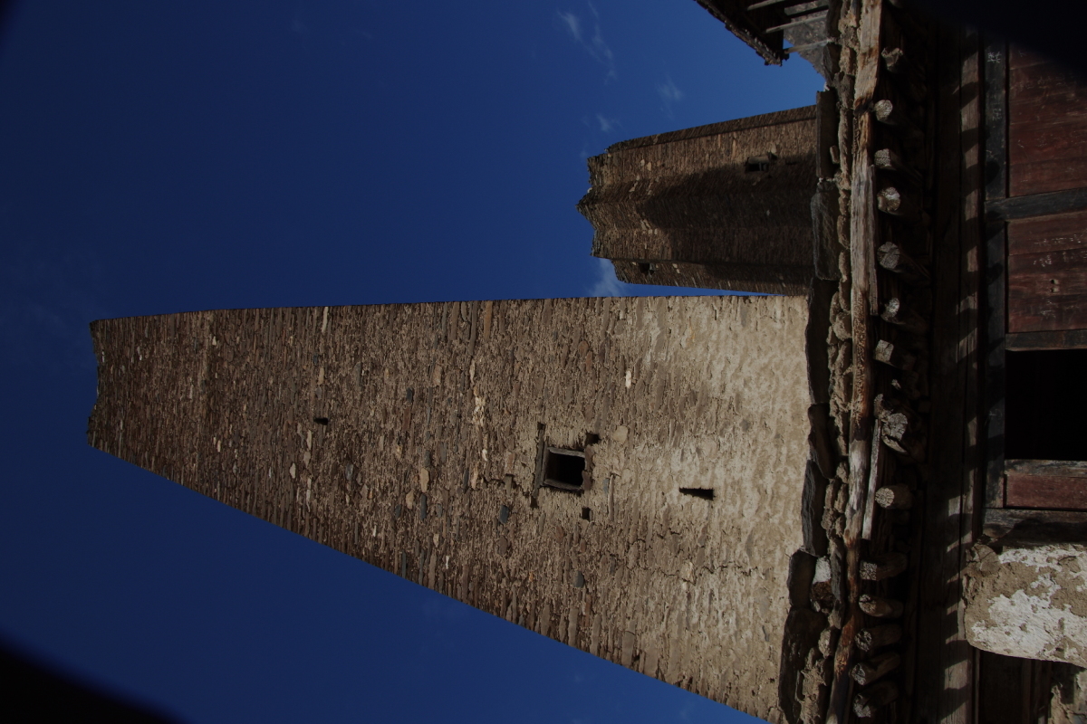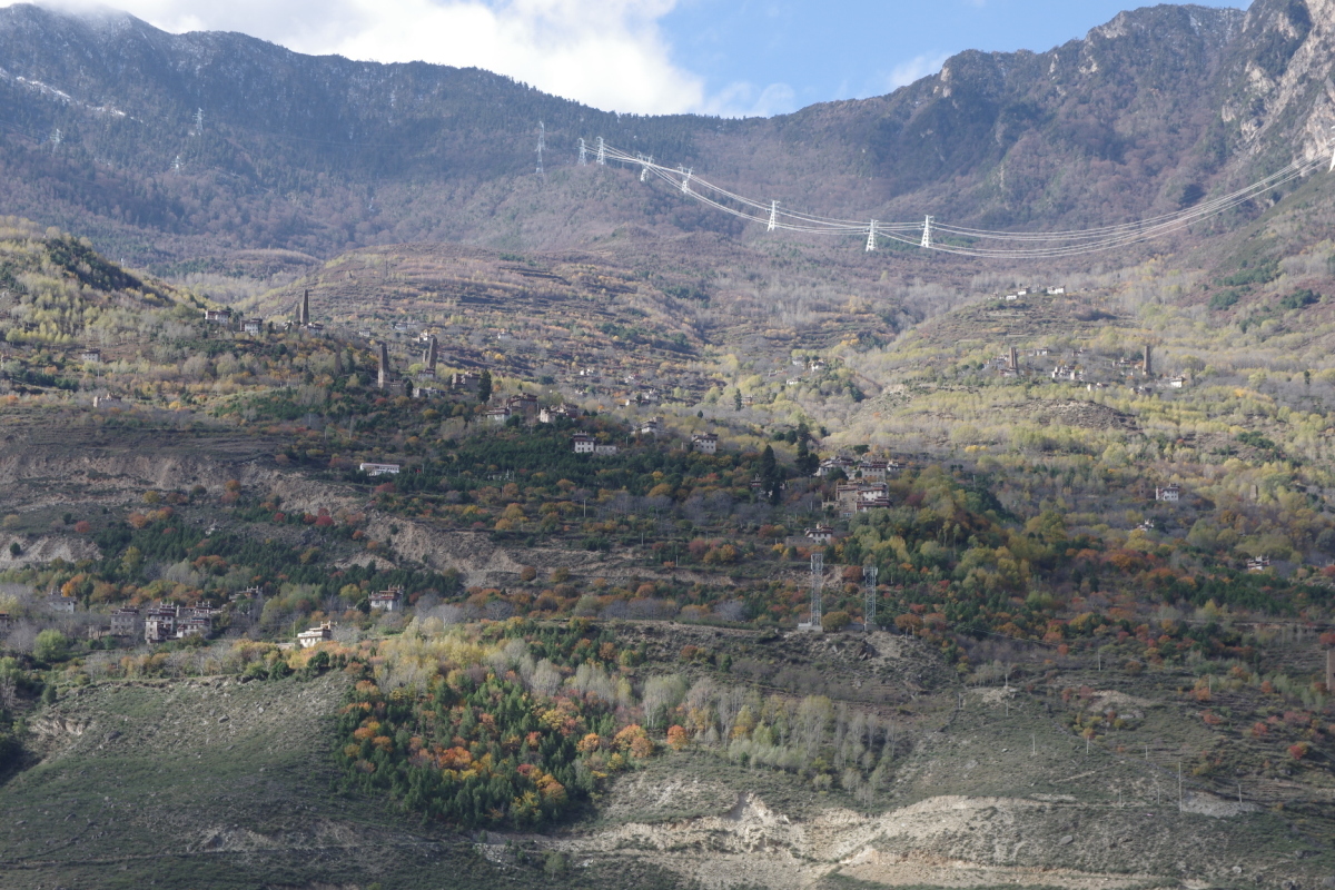 県城から4Kmほどのところにある梭坡郷。 碉楼と呼ばれる高い塔がたくさんある。