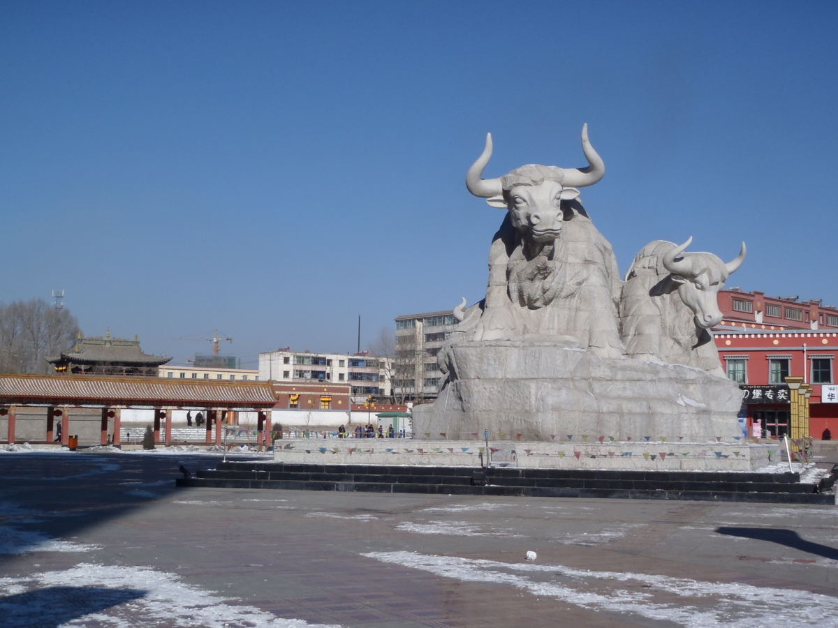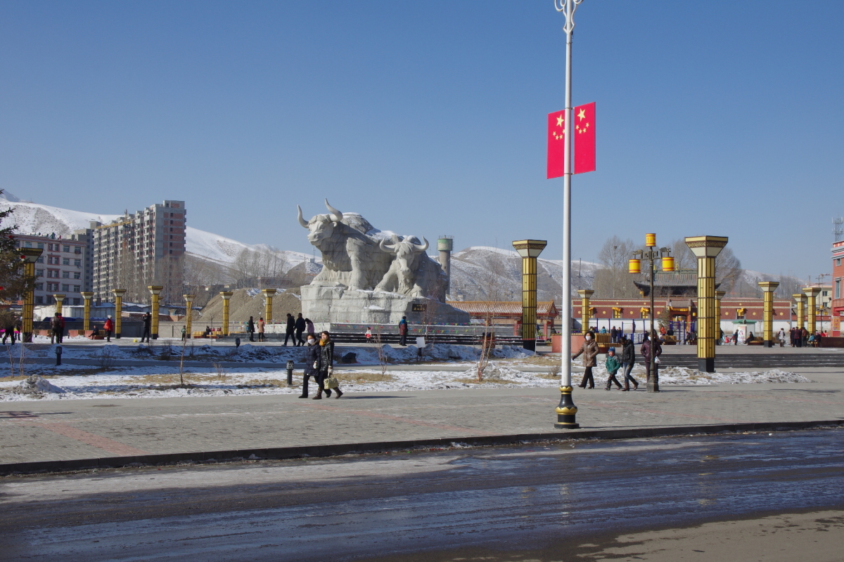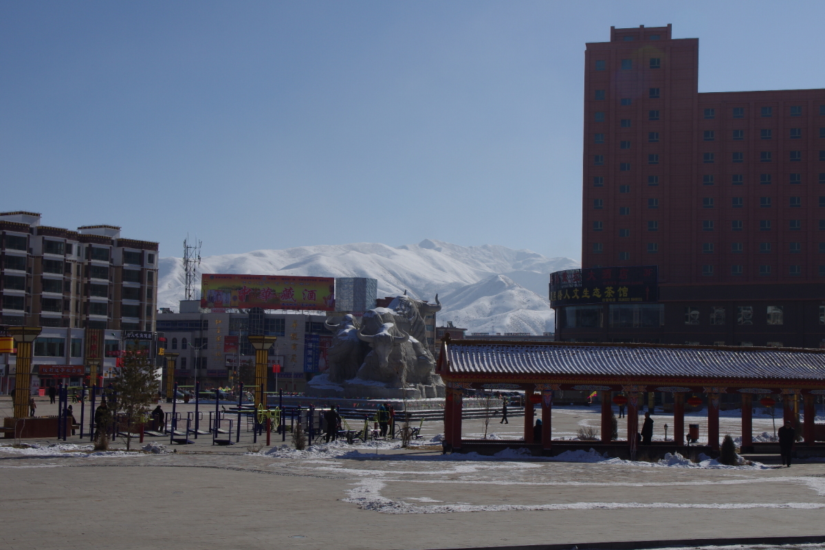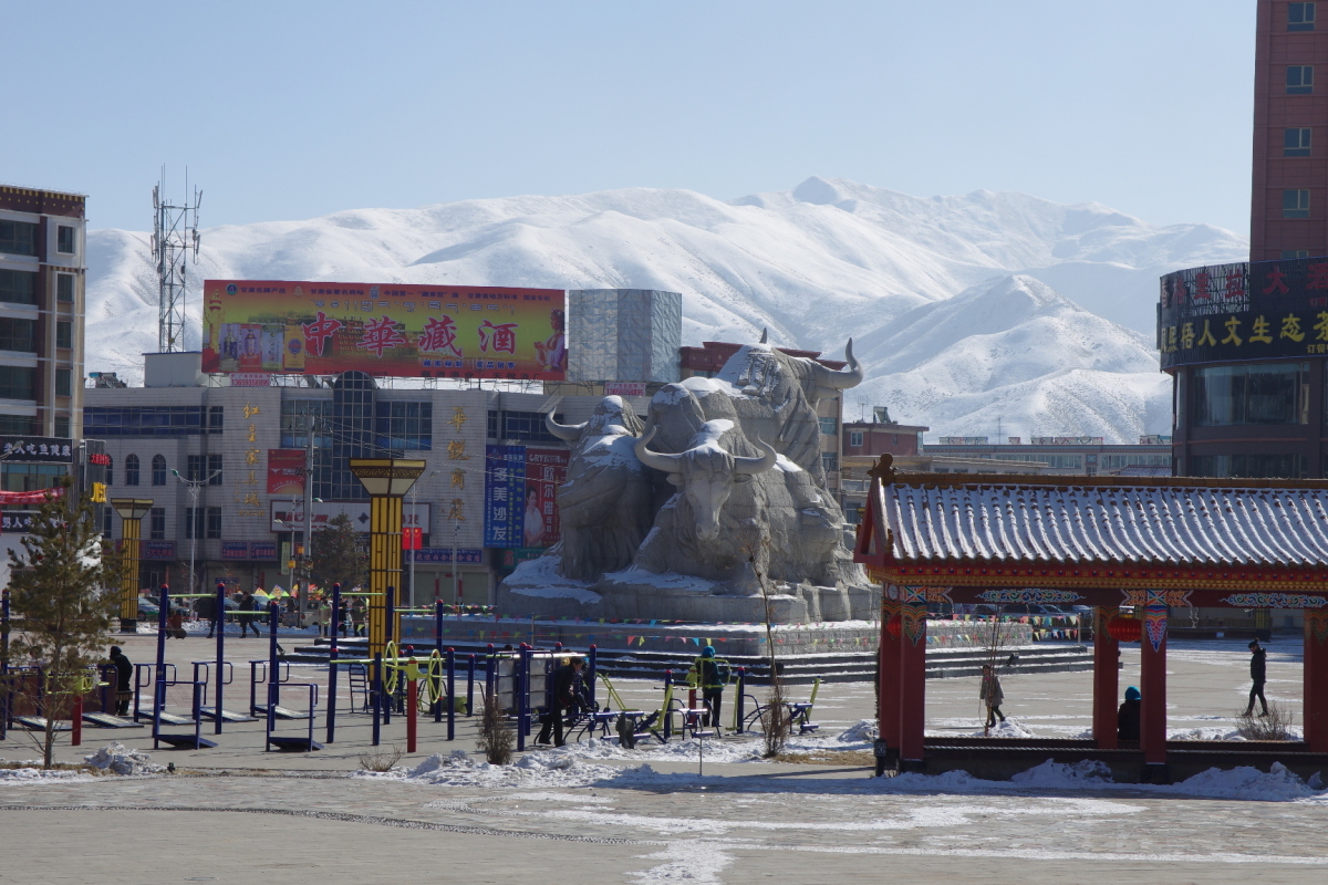 武威市下にあるチベット族自治県。 中心地は華蔵寺鎮。 松山古城へ行くために訪問した。 あと、ここのヤクは白いというのを売りにしているらしい。