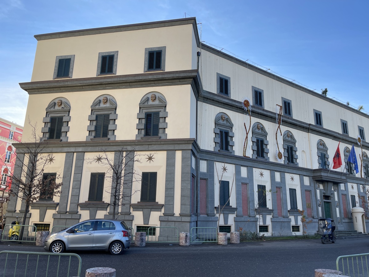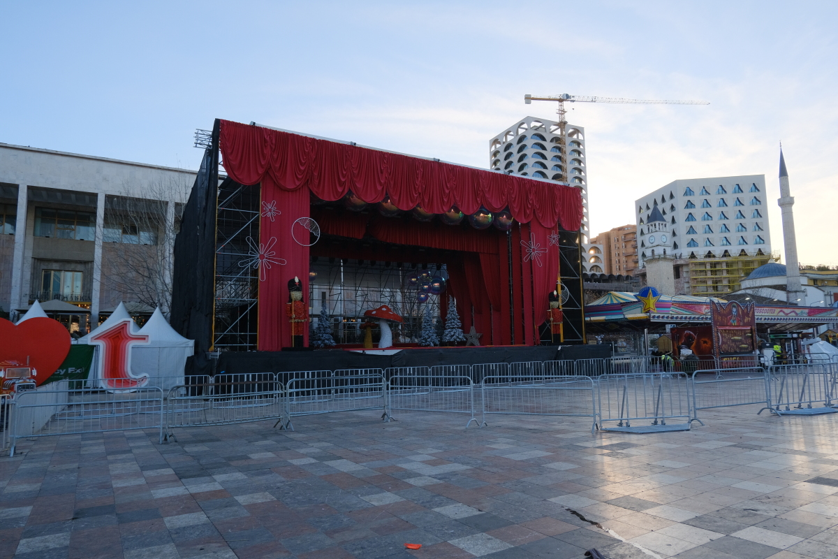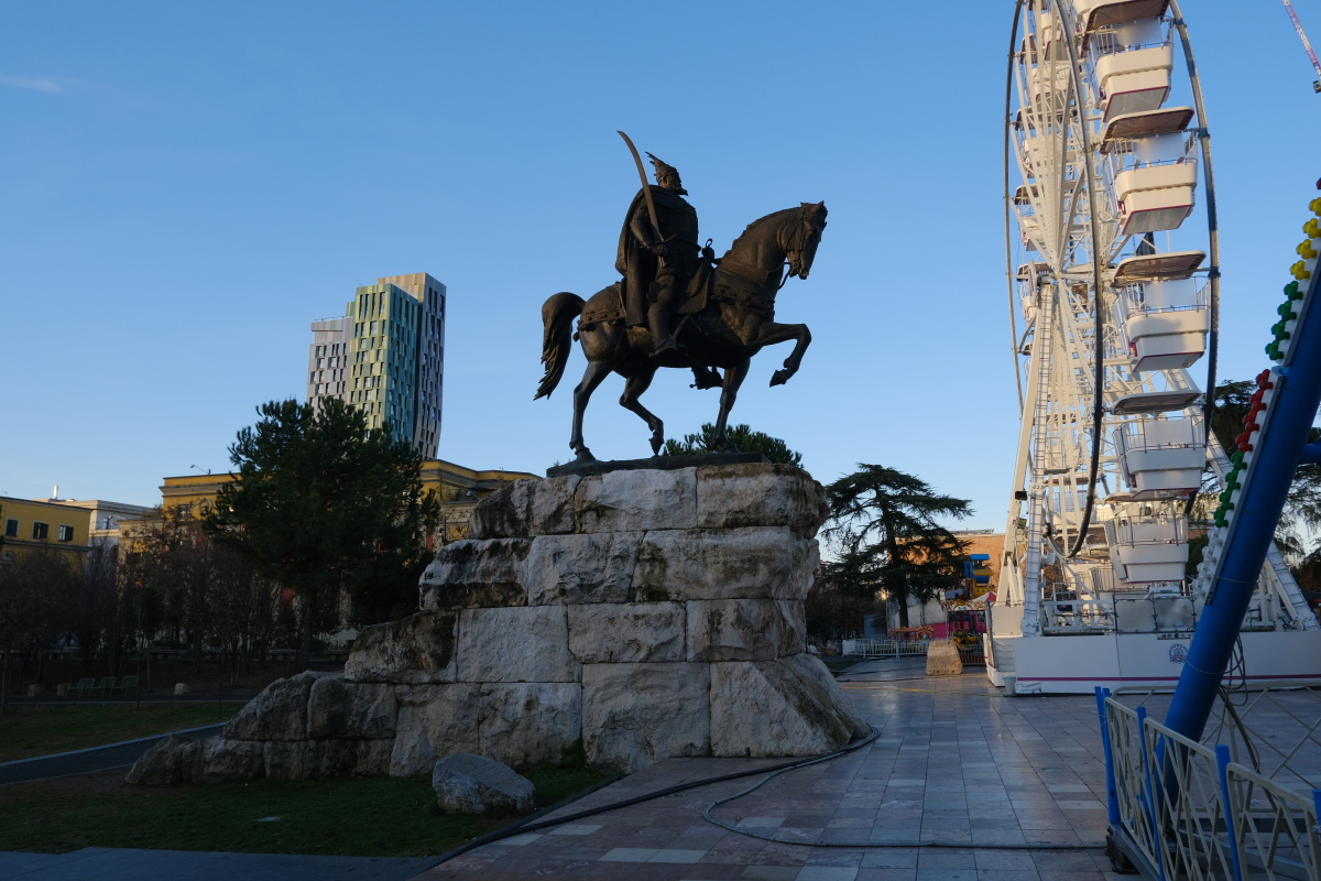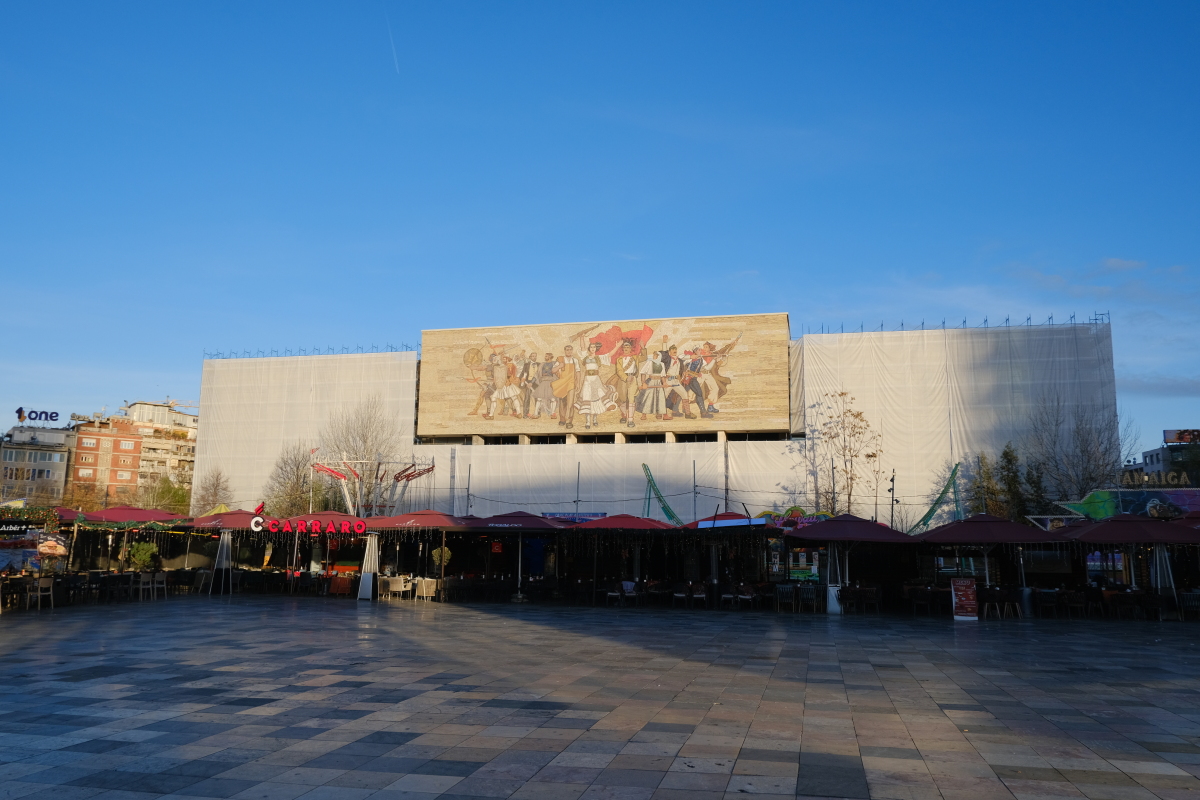 ティラナの中心地であるスカンデルベグ広場周辺を観光した。