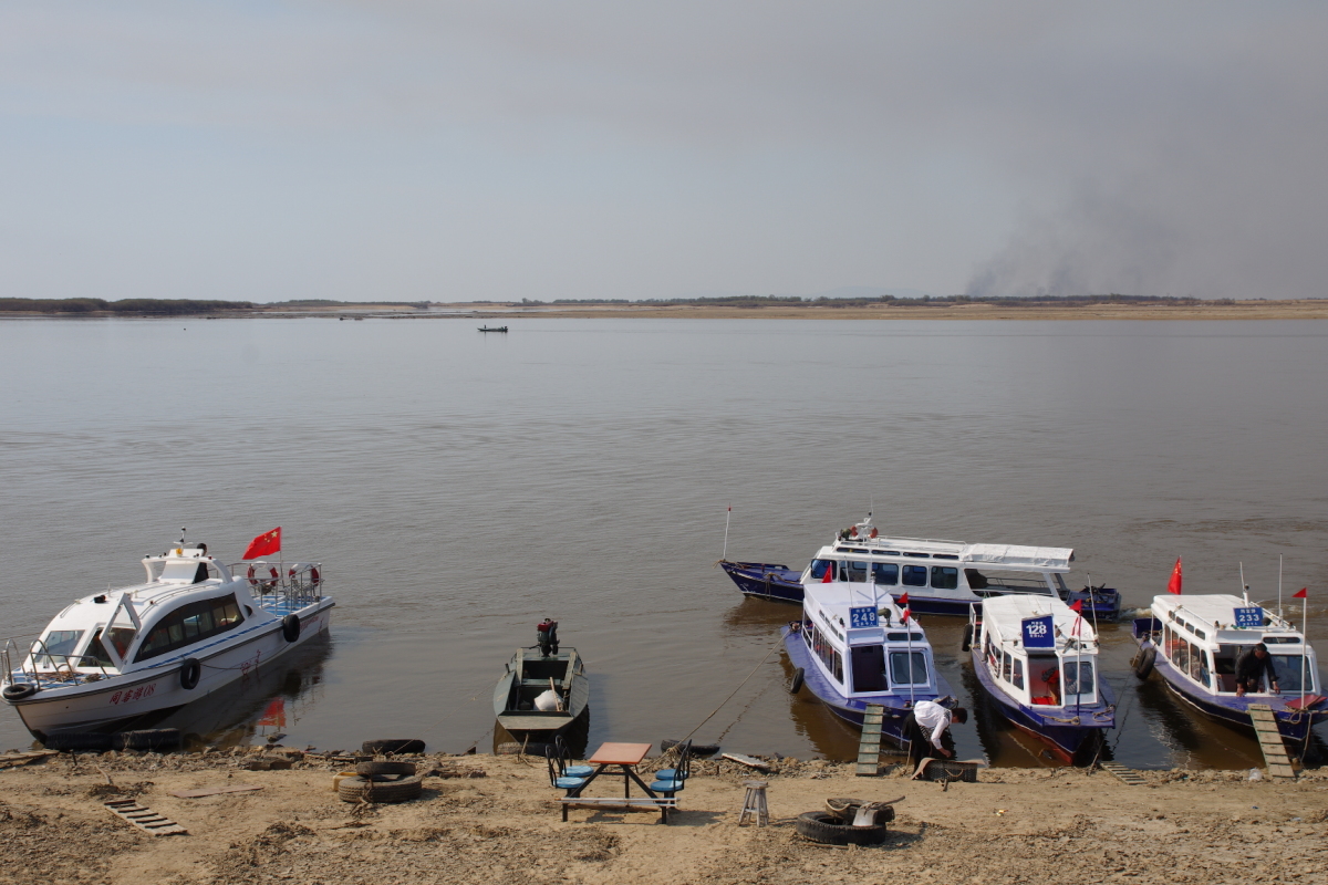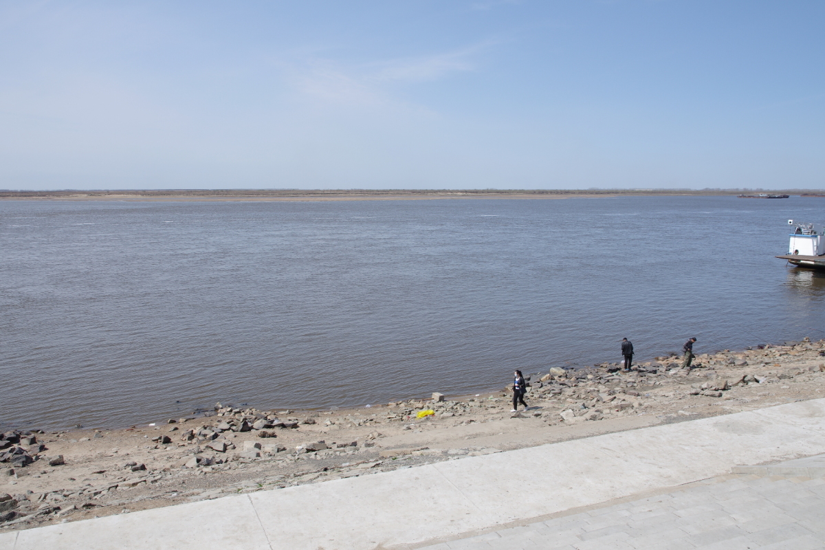 黒龍江(アムール川)を渡ればロシアのレニンスコエという町。 同江の町の北側で黒竜江と松花江が合流しており、「三江口」という観光地になっている。