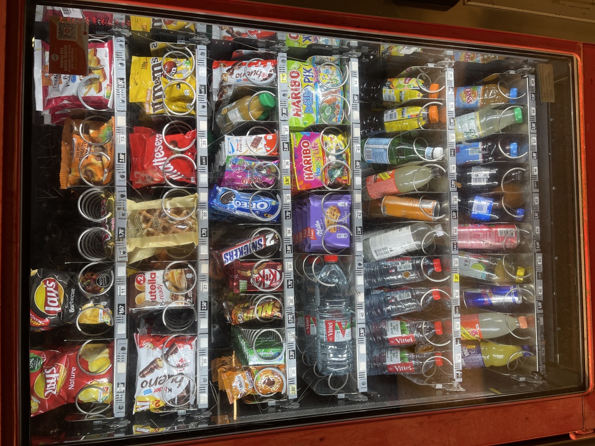 駅の自動販売機。高い。