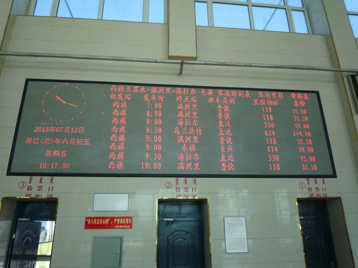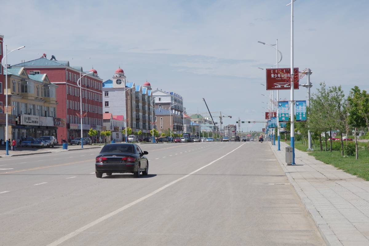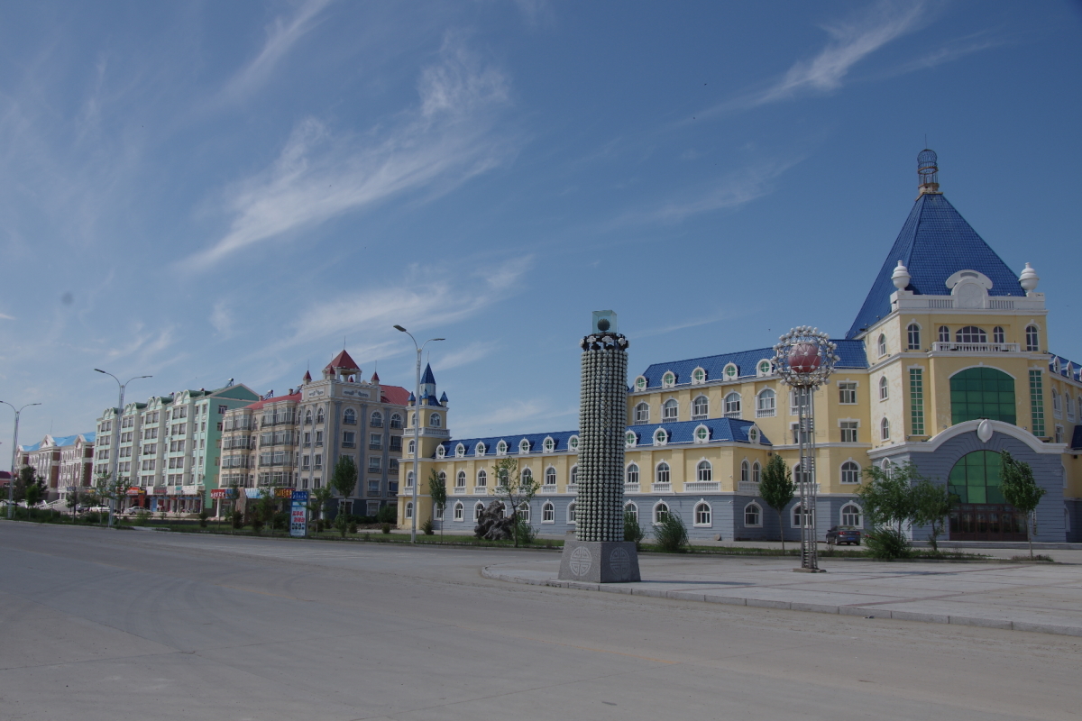 満洲里から日帰りで訪問。 草原のなかにぽつんと町がある。 自分は訪問していないが、ここで有名なのがダライノール(呼倫湖または達赉湖)。中国で5番目に大きい淡水湖で、湖岸では瑪瑙が取れるらしい。