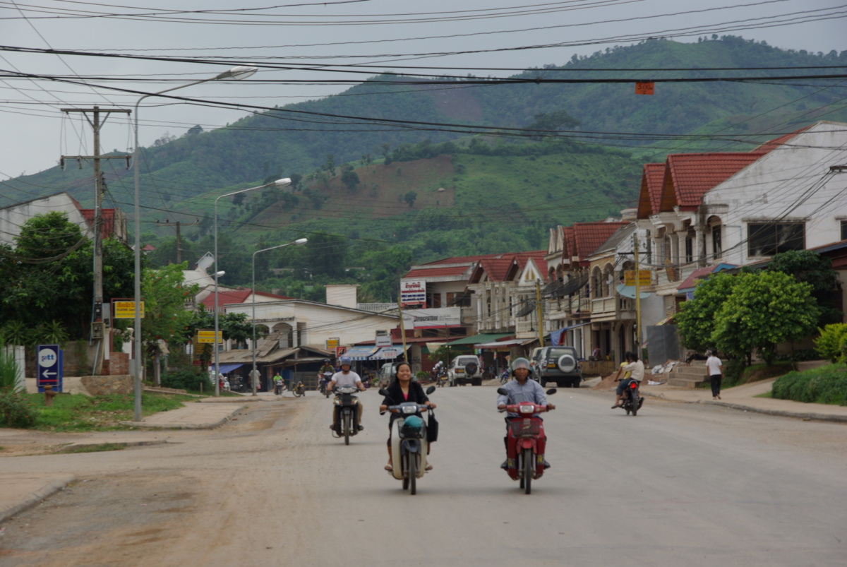 中国との国境近くの町。 ここから勐臘行きの国際バスに乗車した。