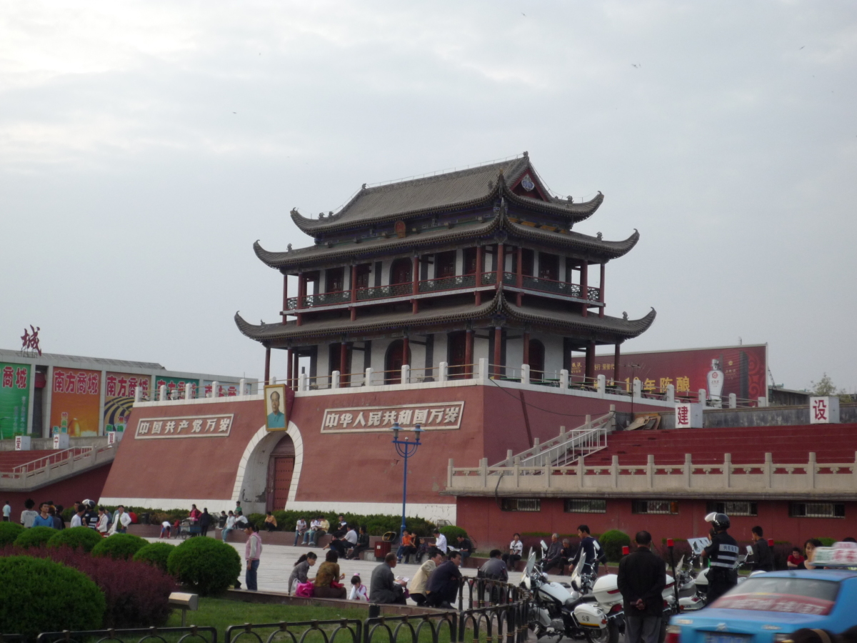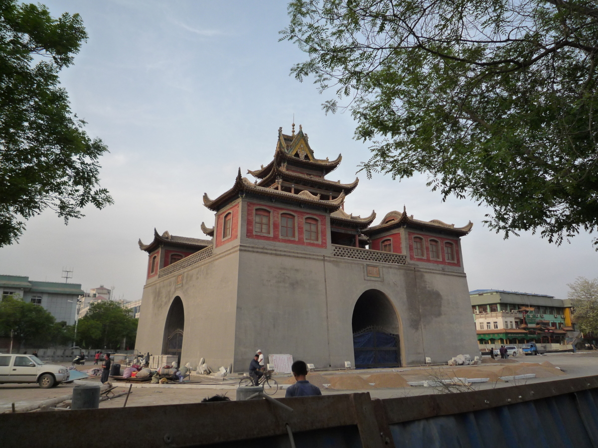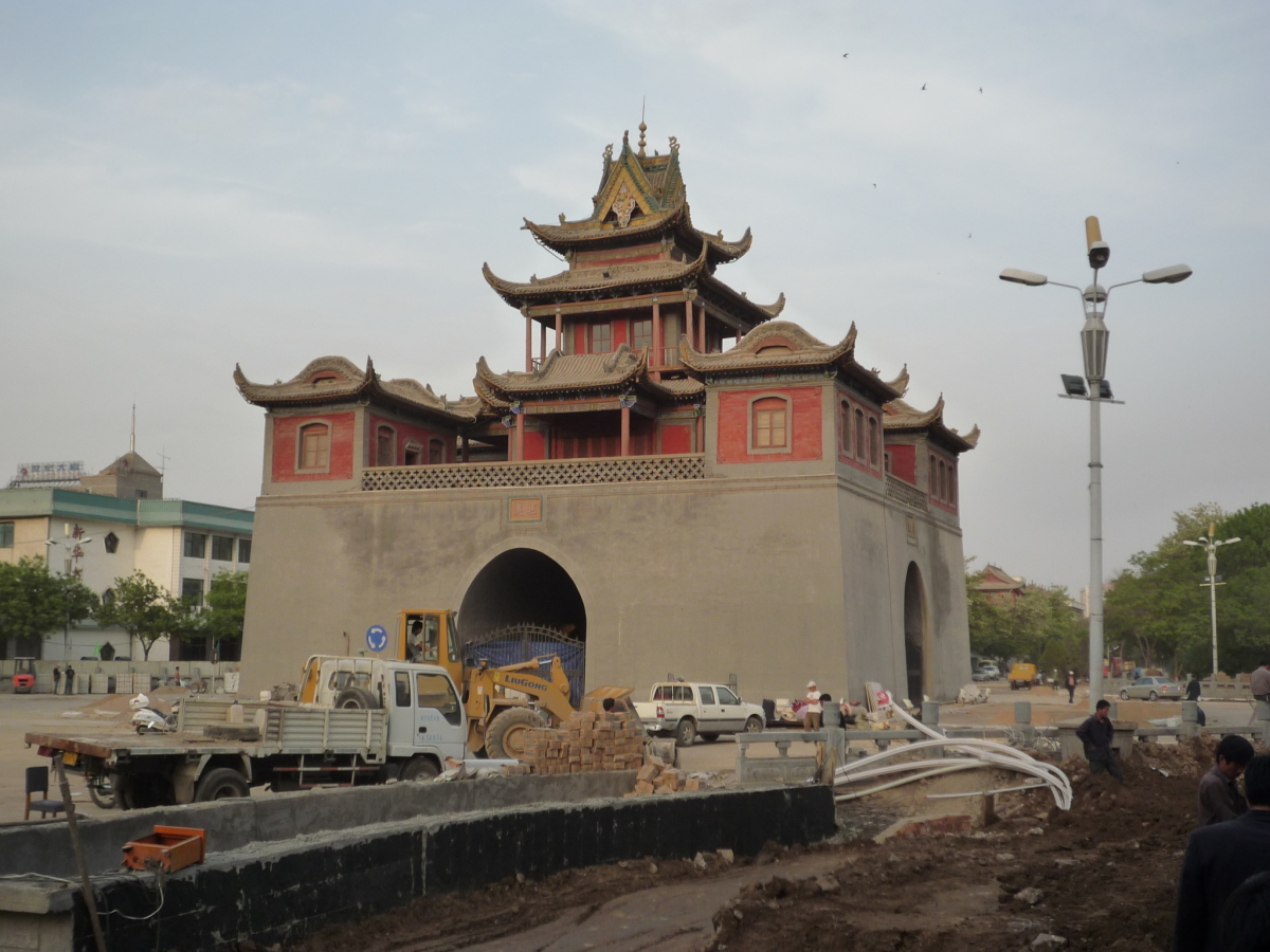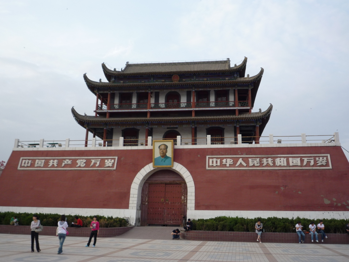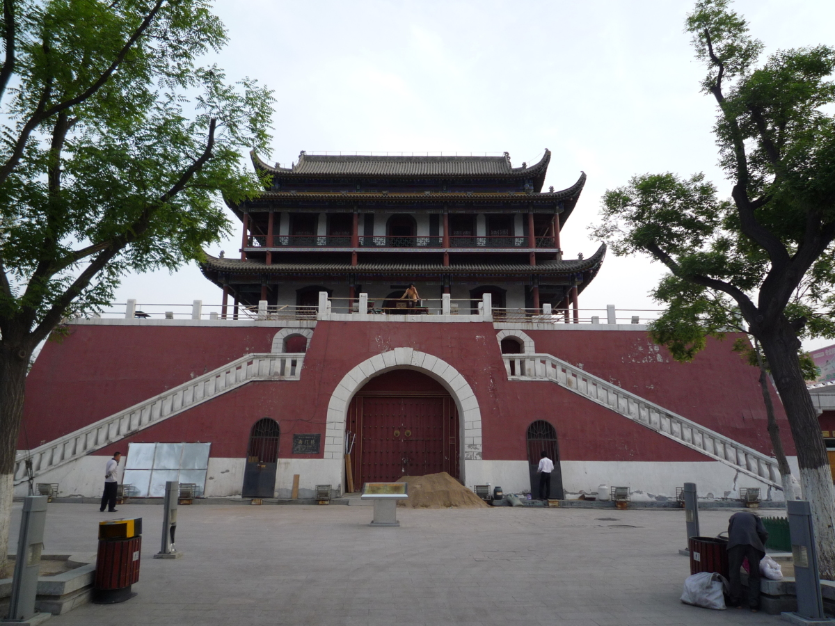 現在の銀川市内。 城壁は残っておらず、南門である南薫門と鼓楼を見ることができる。