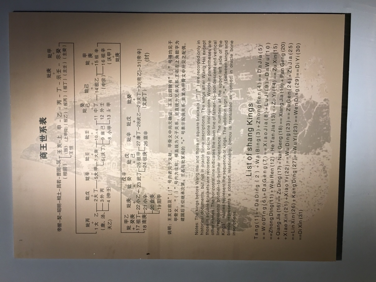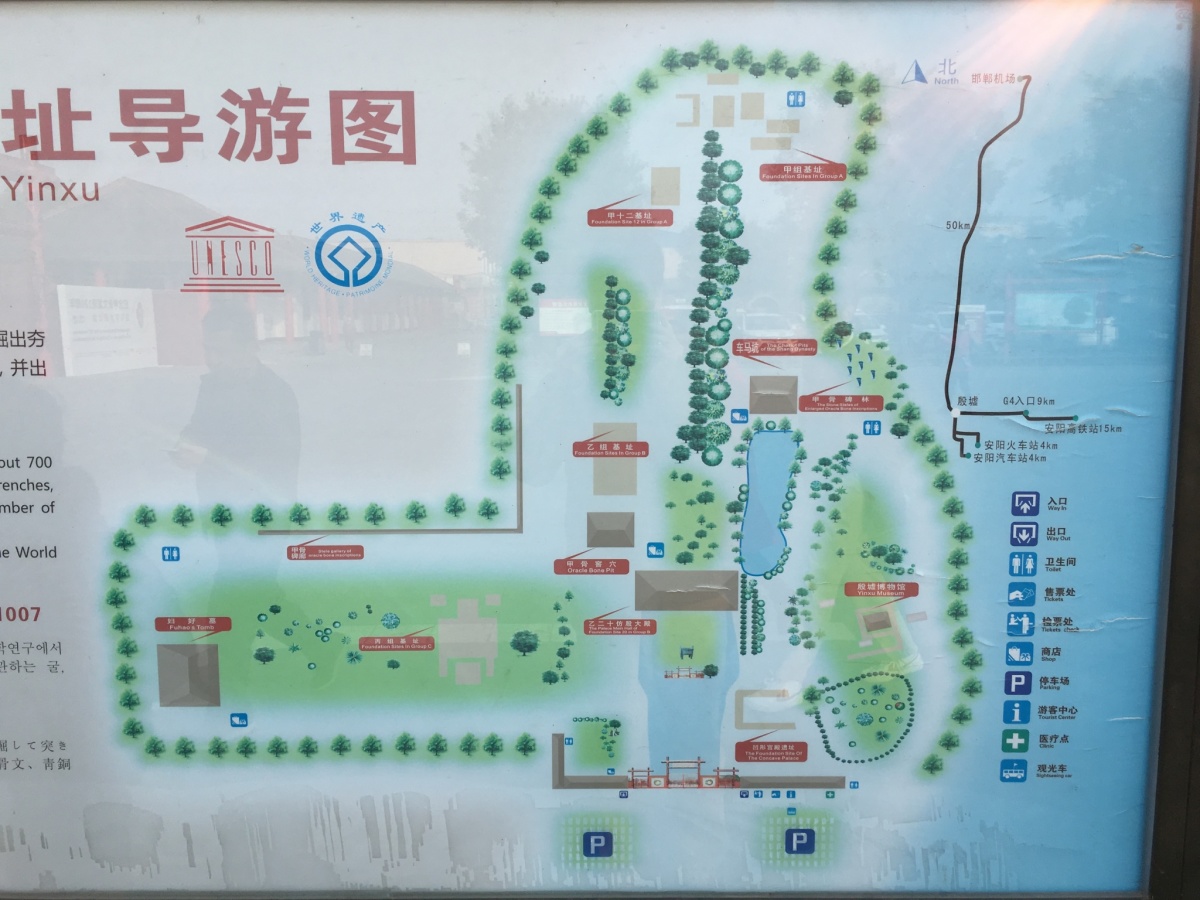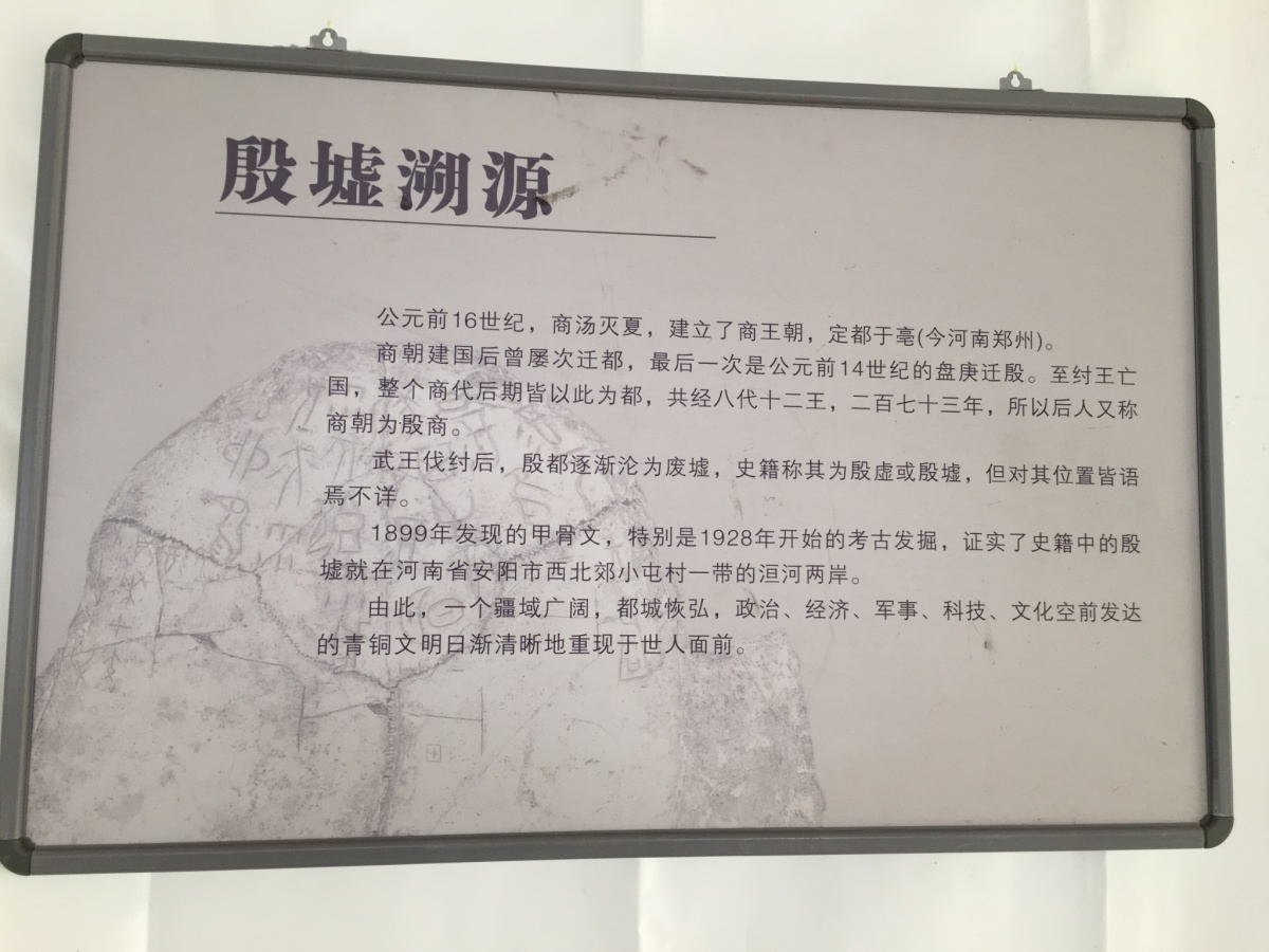 遺跡の他、殷墟博物館や、ここで見つかった甲骨文字についての展示などがある。