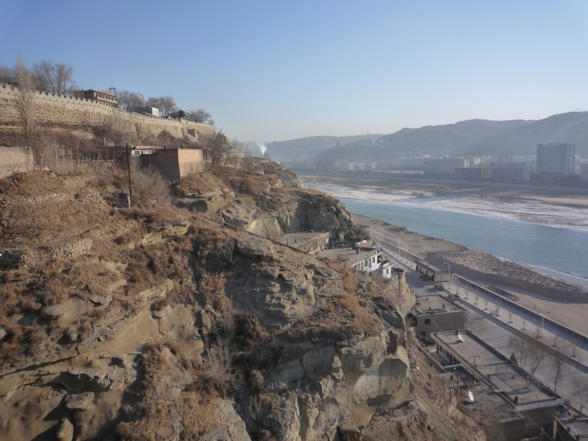 冬の黄河と包頭市内